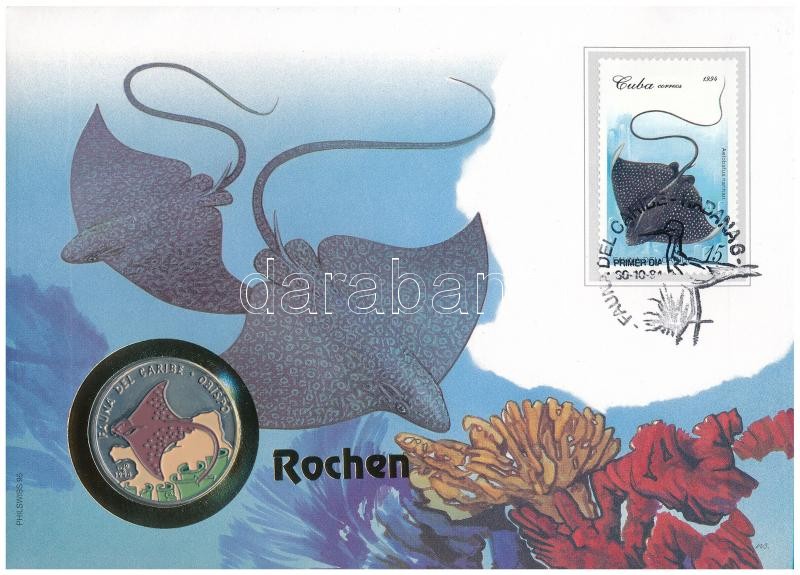 Cuba 1994. Cu-Ni "Spotted Eagle Ray" in coin envelope with first day of issue stamp C:UNC Krause KM# 460
