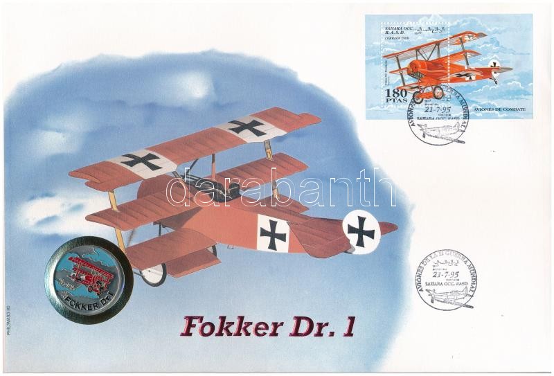 Leírás: Kuba 1994. 1P Cu-Ni multicolor "Fokker" érmés borítékban, bélyegzéses bélyeggel T:1 Cuba 1994. Cu-Ni multicolor "Fokker" in coin envelope with stamp and cancellation C:UNC Krause KM# 460