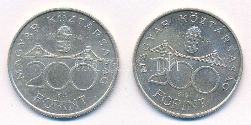 Leírás: 1994. 200Ft Ag "Deák" (2x) T:1-,2