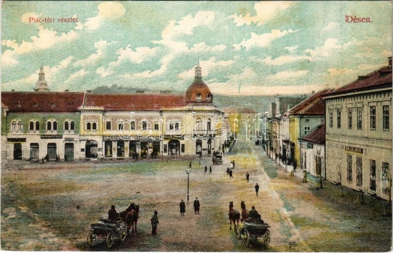1907 Dés, Dej; Piac tér, Kanyó Antal, Rehák Ágoston, Makó Mihály és Ka... https://www.darabanth.com/hu/408-Gyorsarveres/408.0/Kepeslapok/Erdely~1500006/1907-Des-Dej-Piac-ter-Kanyo-Antal-Rehak-Agoston-Mako-Mihaly-es-Kallus-Jakab-uzlete-s~II2527148