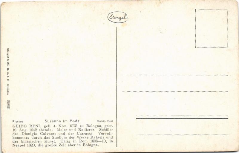 Leírás: Susanna im Bade / Erotic nude lady art postcard. Stengel litho s: Gudio Reni (vágott / cut)