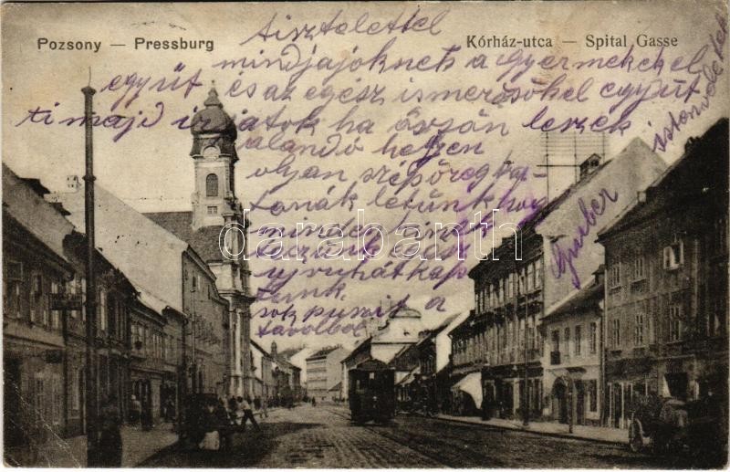 1916 Pozsony, Pressburg, Bratislava; Kórház utca, villamos / Spital Ga... https://www.darabanth.com/hu/408-Gyorsarveres/408.0/Kepeslapok/Felvidek~1500007/1916-Pozsony-Pressburg-Bratislava-Korhaz-utca-villamos-Spital-Gasse-street-tram-EK~II2526950