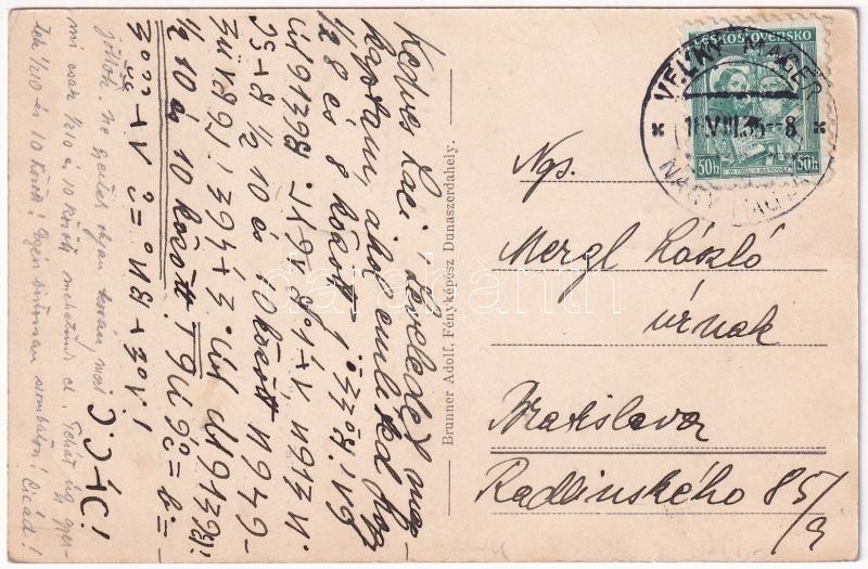 Leírás: 1935 Nagymagyar, Velky Mager, Zlaté Klasy; Fogyasztási Szövetkezet üzlete, Községháza. Brunner Adolf fényképész / cooperative shop, town hall