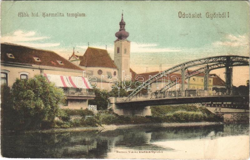 Győr, Rába híd, Karmelita templom, híd. Berecz Viktor kiadása (EK) https://www.darabanth.com/hu/408-Gyorsarveres/408.0/Kepeslapok/Magyarorszag~1500005/Gyor-Raba-hid-Karmelita-templom-hid-Berecz-Viktor-kiadasa-EK~II2523383