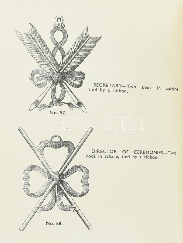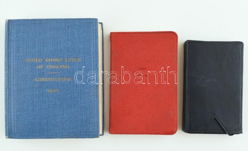 3 db angol szabadkőműves könyv a szertartásokról, rangokról: 1935 The perfect ceremonies of craft freemasonry, 1957 The ritual of the Holy Arch, 1947 United grand lodge of England, Constitutions
