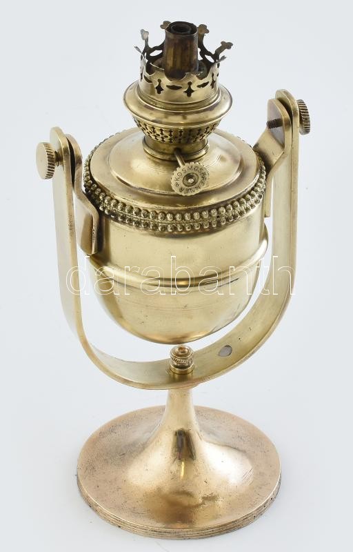 Leírás: Fali réz petróleum lámpa, cilinder nélkül, m: 27 cm