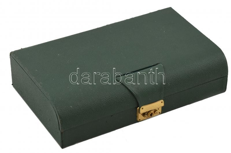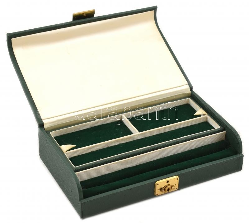 Leírás: Vintage ékszeres doboz, belül bársonnyal bélelt, kis sérüléssel, kulcs nélkül. 25x15x6 cm