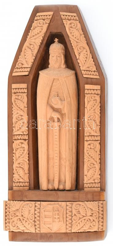 Leírás: Nagy Ferenc (1920-1998): Szent István király. Fafaragás. Jelzett 42 cm