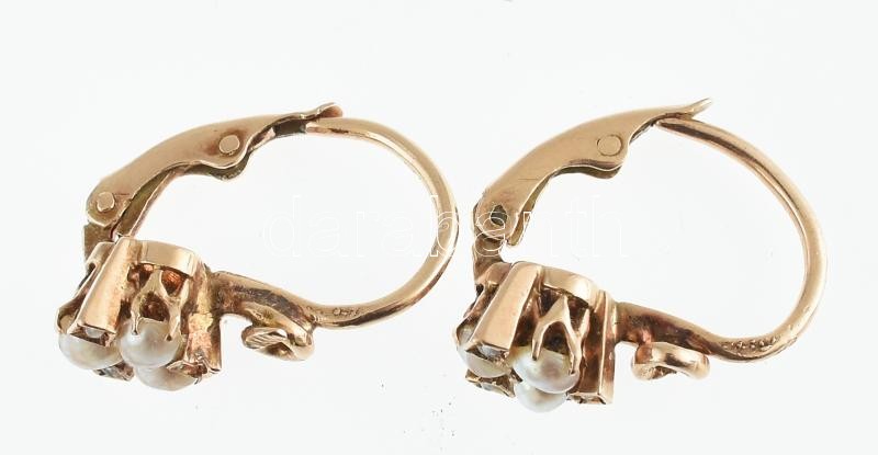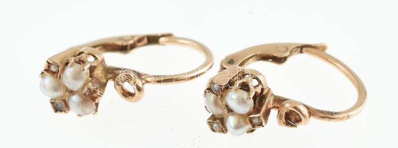 Leírás: Arany (Au) 14K gyöngyökkel díszített fülbevalópár, jelzett, d: 0,8 cm, bruttó: 2,3 g