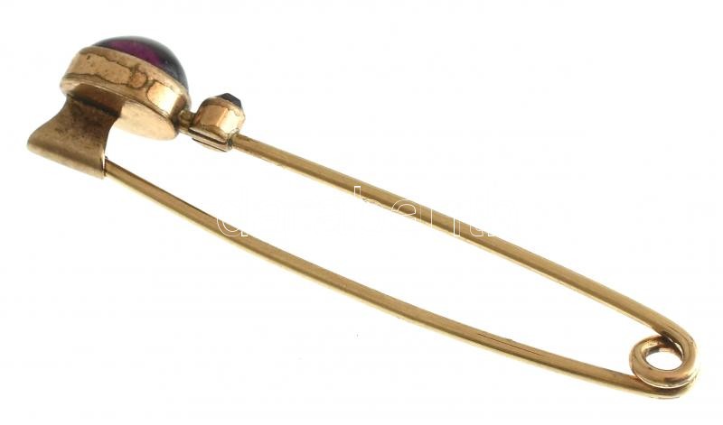 Leírás: Arany (Au/9k) gránáttal ékített bross, jelzés nélkül, kopott, bruttó: 3g, h: 5,5cm
