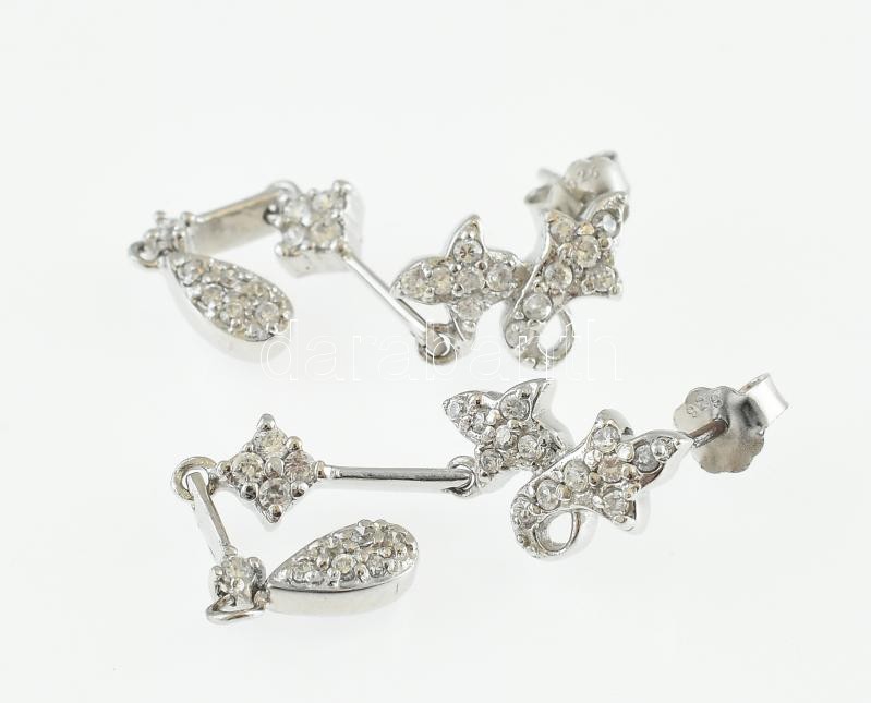 Leírás: Ezüst(Ag) csüngős fülbevalópár apró kövekkel, jelzett, h: 5 cm, bruttó: 6,07 g