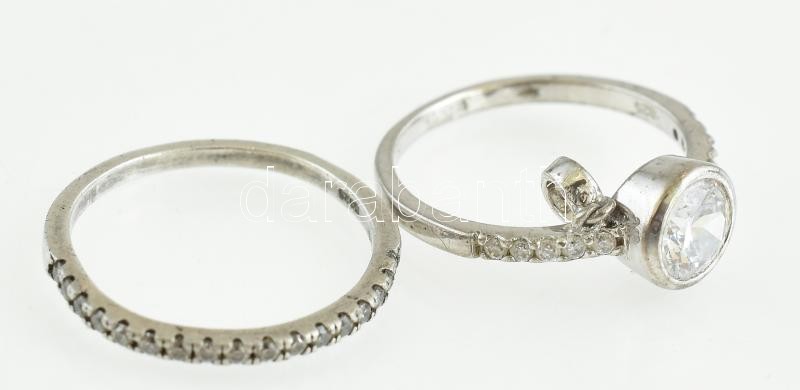 Leírás: Ezüst(Ag) gyűrű apró kövekkel, 2 db, jelzett, méret: 54 és 55, bruttó: 3,77 g