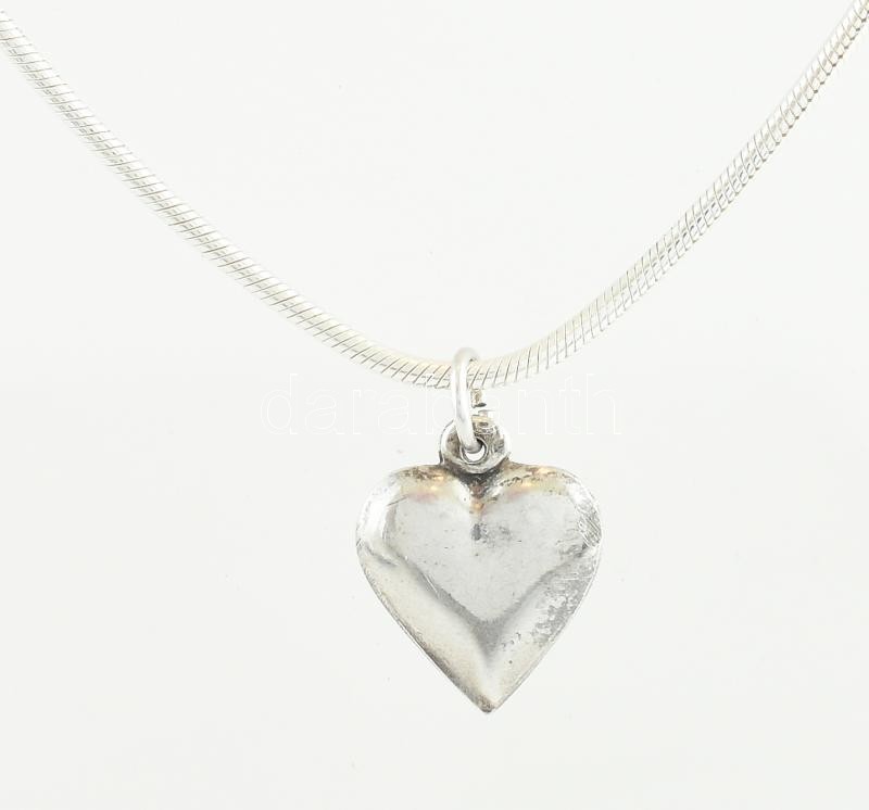 Leírás: Ezüst(Ag) kígyó nyaklánc szív függővel, jelzett, állítható hosszúság, 45-50 cm, 1,5×1 cm, nettó: 6,8 g