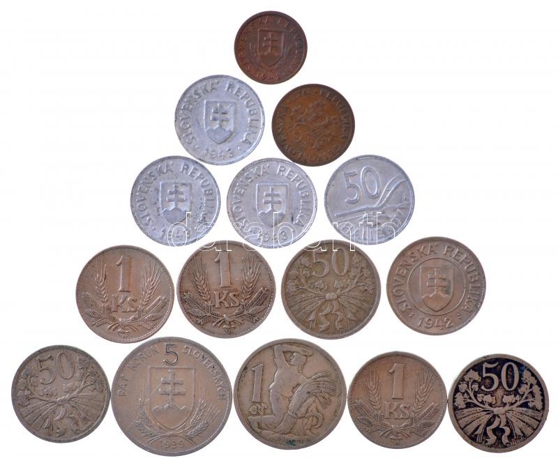 Czechoslovakia 1921-1931. 50 Haleru Cu-Ni (3xklf) + 1922. 1 Koruna Cu-Ni 1927. 10 Haleru Br + Szlovákia 1939. 5 Korún Ni "Andrej Hlinka" + 1941-1942. 1 Koruna Cu-Ni (4db, 2xklf) + 1942. 10 Halierov Br + 1943. 50 Halierov Al (4x) C:AU-F