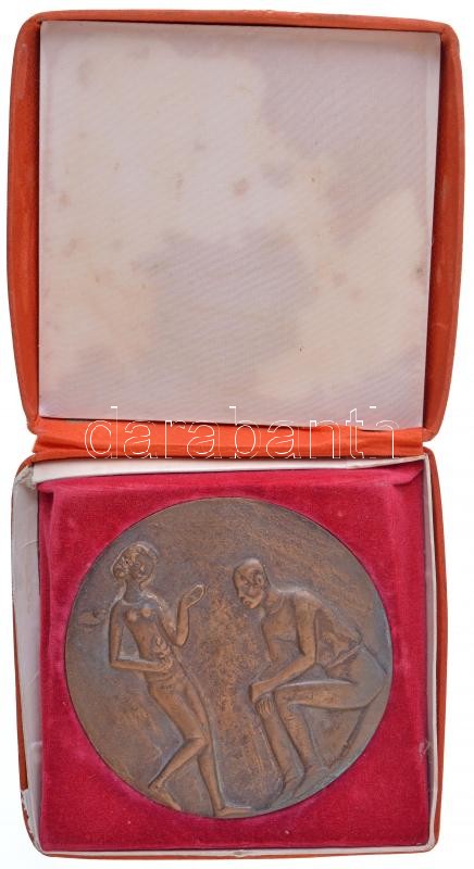 Idősebb Pál Mihály (1911-1971) DN "Nyugdíjazása alkalmából a Kiskőrösi Vegyes KTSZ vezetősége - 'Köszönjük élet! áldomásidat, ez jó mulatság, férfi munka volt!' Vörösmarty" öntött Br érem (125mm) T:1- Sérült papírdobozzal