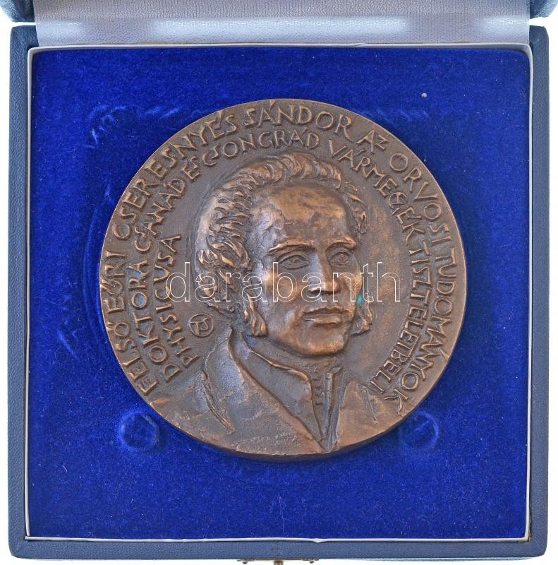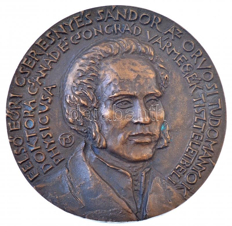 Tóth Sándor (1933-) 1984. "Cseresnyés Sándor 1786-1854 / Magyar Fül-Orr-Gégeorvosok Egyesülete - A hallás előműszereiről, hallásról, ezeknek bajairól s orvoslásokról - Cseresnyés emlékérem" kétoldalas, öntött bronz emlékérem, eredeti dísztokban (105mm) T:1 kis patina