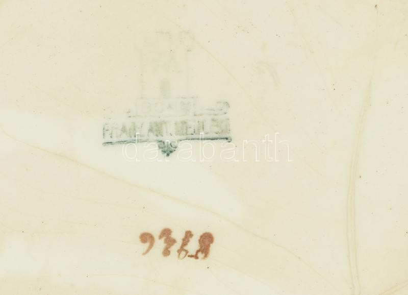 Leírás: Franz Ant Mechlen szecessziós, óriás fajansz kaspó. Kézzel festett, jelzett, minimális kopással. d: 26 cm