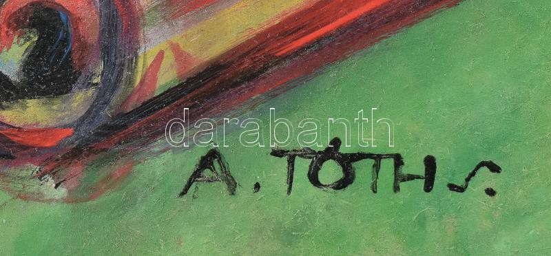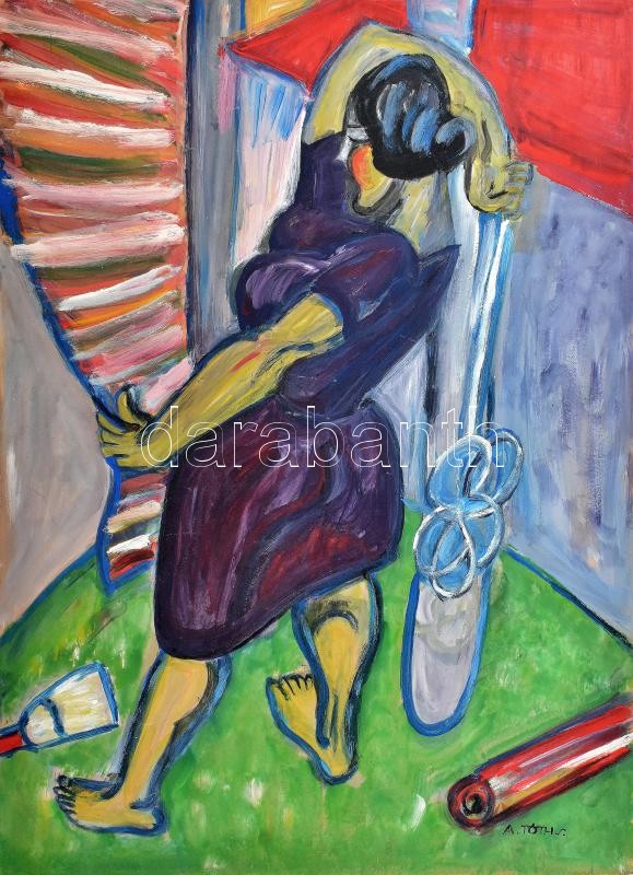 Leírás: A. Tóth S. jelzéssel: Munkában. Olaj, karton, kissé vetemedett. 80x60 cm