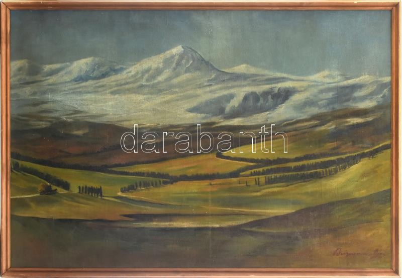 Leírás: Bornemisza Géza jelzéssel: Hegyvidéki táj. Olaj, vászon. Fa keretben. 83x122 cm