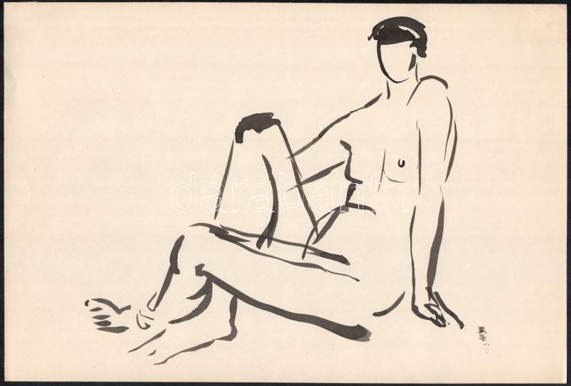 Leírás: Jelzés nélkül: 4 db női akt tanulmány, tus, papír, egyik hátoldalán Z. Gács felirattal, kb. 28×20 cm