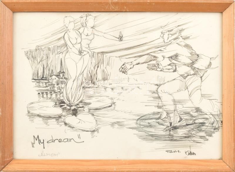 Leírás: Olvashatatlan jelzéssel: ,,My dream 973" Ceruza, papír. Üvegezett keretben. 20X28cm