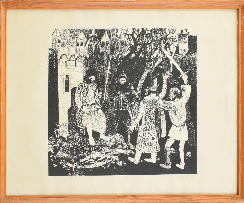 Berki Viola (1932-2001): Középkori jelenet. Linó, papír, jelzett, üveg... https://www.darabanth.com/hu/409-Gyorsarveres/409.0/Festmenyek-es-grafikak/Festmenyek-es-grafikak~500001/Berki-Viola-1932-2001-Kozepkori-jelenet-Lino-papir-jelzett-uvegezett-fakeretben-30C39733-~II2539952