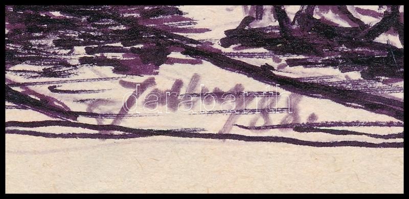 Leírás: Jedlinszky Tibor (?-?): Jelenet. Filctoll, papír. Jelzett. Lap széle kissé foltos. 16x17 cm