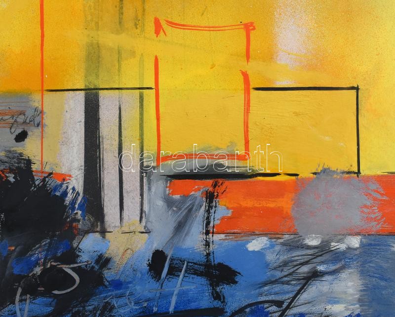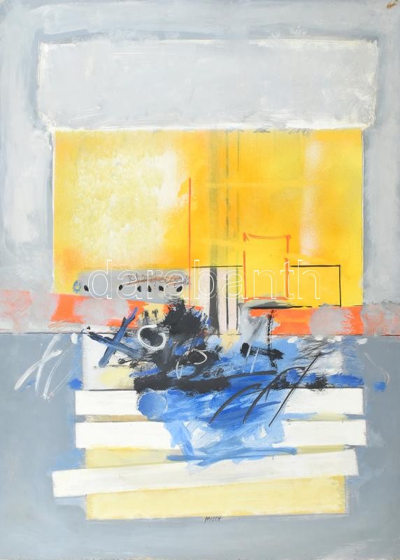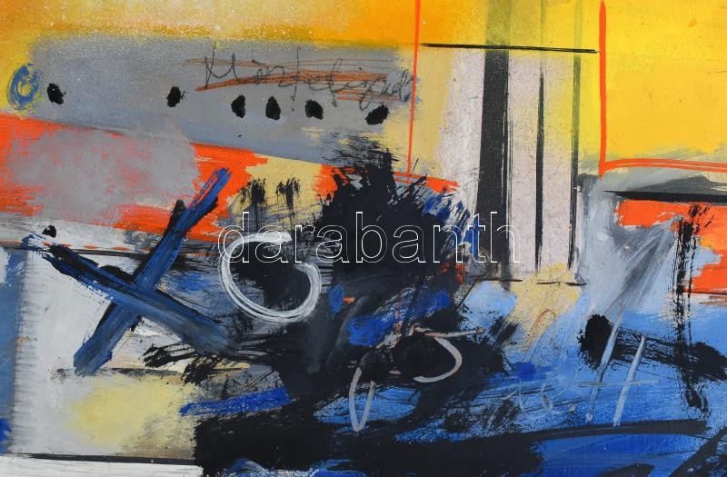 Misch Ádám (1935-1995): Gesztusok (cím nélkül), 1980-as évek eleje. Akril, kréta, farost, jelzett. 70×50 cm. / Ádám Misch: Gestures. Acrylic and chalk on wood fiber, signed (Misch), 70×50 cm.