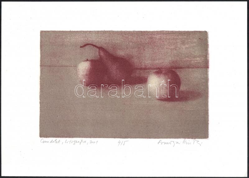 Somorjai Kiss Tibor (1959-): Csendélet, 2001. Litográfia, papír, jelzett, számozott: 4/5. 15×24 cm. Soós Imre (1921-2013), műgyűjtő, művészeti író, a Kisgrafika folyóirat szerkesztője, a Magyar Nemzeti Galéria Baráti Köre alelnökének hagyatékából.