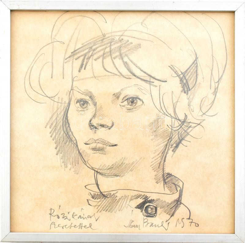 Szász Endre (1926-2003): Női fejtanulmány,1970. Ceruza, papír, jelzett, bal oldalon autográf felirat: "Rózsikának szeretettel". Üvegezett keretben. 18,5x18,5 cm.