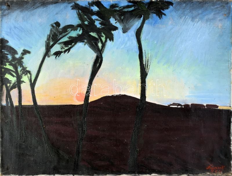 Szurcsik János (1931-): Naplemente. Olaj, vászon, jelzett és datált (S... https://www.darabanth.com/hu/409-Gyorsarveres/409.0/Festmenyek-es-grafikak/Festmenyek-es-grafikak~500001/Szurcsik-Janos-1931-Naplemente-Olaj-vaszon-jelzett-es-datalt-Szurcsik-974-hatoldalan~II2543661