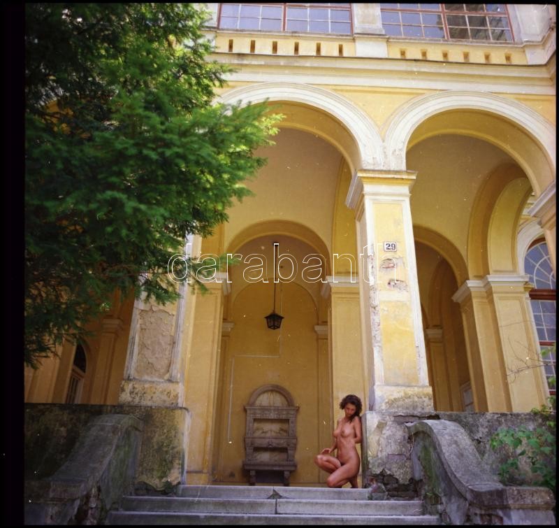 Több fotómodell közreműködésével, eltérő időben és változó helyszíneken készült akt felvételek, Menesdorfer Lajos (1941-2005) budapesti fotóművész hagyatékából, 5 db vintage NEGATÍV, 6x6 cm
