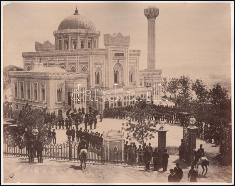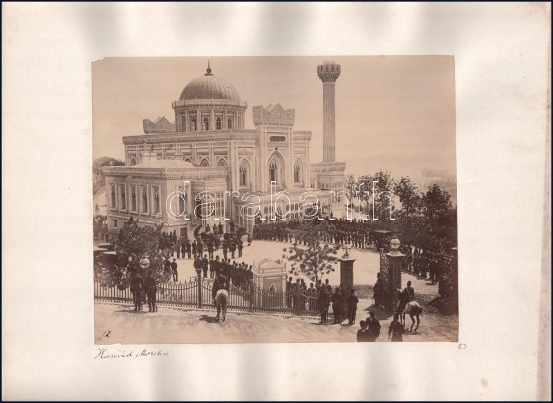 Leírás: cca 1900 Isztambul (Konstantinápoly), Hamidije mecset, kartonra kasírozott, feliratozott fotó, 26,5x21 cm / Istanbul (Constantinople), Yildiz Hamidiye Mosque, vintage photo, 26.5x21 cm