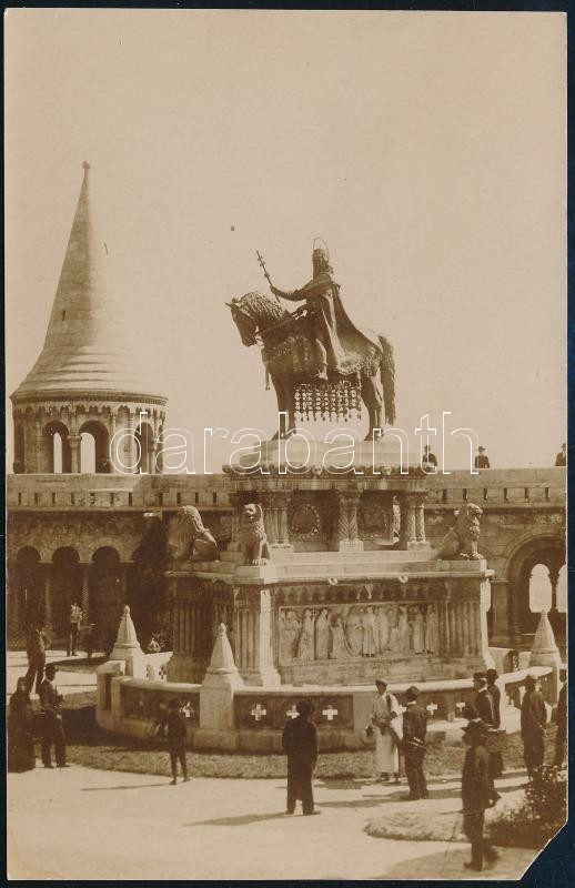 cca 1906 Budapest, Szent István-szobor, fotólap, sarokhiánnyal, 14×9 c... https://www.darabanth.com/hu/409-Gyorsarveres/409.0/Fotomuveszet/Foto~500021/cca-1906-Budapest-Szent-Istvan-szobor-fotolap-sarokhiannyal-14C3979-cm~II2541029