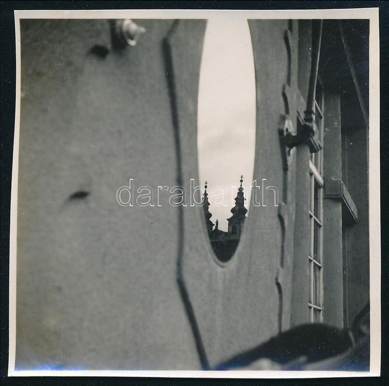 cca 1931 Kinszki Imre (1901-1945) budapesti fotóművész hagyatékából 1 db vintage fotó, jelzés nélkül (az Erzsébet híd pillérjén átfényképezve), 5,5x5,5 cm