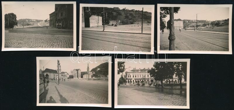Leírás: cca 1940 Budapest, Krisztina tér és a lebontott Tabán, 5 db fotó, 4,5×6,5 cm