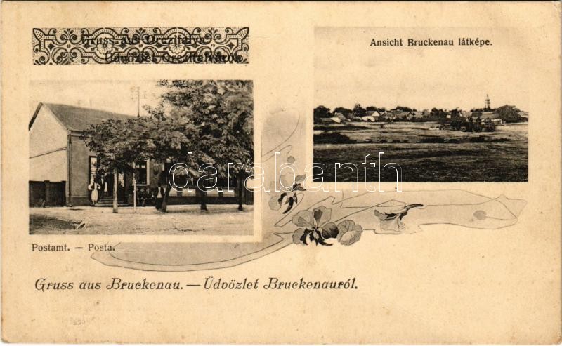 Leírás: 1909 Hidasliget, Bruckenau, Pischia; posta / Postamt / post office. Art Nouveau, floral