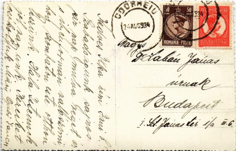 1934 Székelyudvarhely, Odorheiu Secuiesc; Fő tér, bank, Schuller és Lőrinczy Zakariás üzlete. Foto Lux / Banca Cetatea / main square, bank, shops. photo