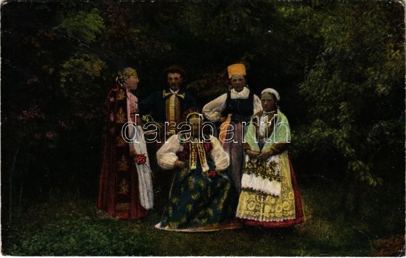 Prázsmár, Tartlau, Prejmer; Prázsmári szász viselet. Vasúti levelezőlapárusítás. Erdélyi udvari fényképész felvétele / Volkstracht der Sachsen / Transylvanian Saxon folklore (Rb)