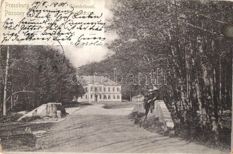 Leírás: 1901 Pozsony, Pressburg, Bratislava; Vaskutacska, Ferdinánd király vasfürdő. Kiadja Louis Koch. / Eisenbrünnel (Eisenbründl) / Zelezná Studénka / spa (b)