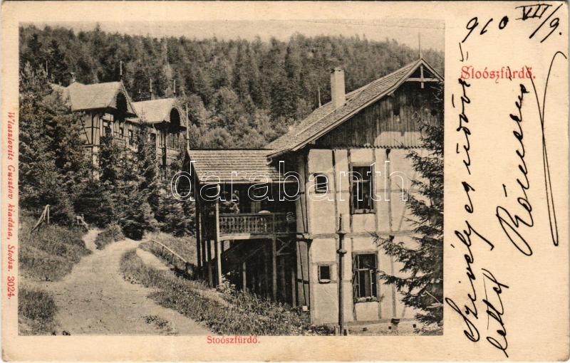 Leírás: 1910 Stószfürdő, Stoósz-fürdő, Kúpele Stós; nyaralók. Wlaszlovits Gusztáv 3024. / villas (fa)