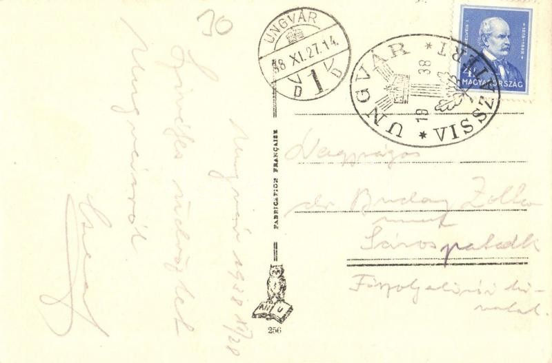 Leírás: 1938 Ungvár, Uzshorod, Uzhorod; Ung folyó részlete, zsinagóga, híd / Uzh riverside, bridge, synagogue + "1938 Ungvár visszatért" So. Stpl