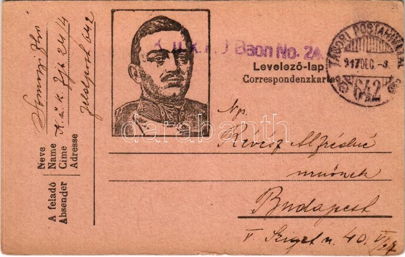 1917 Első világháborús tábori postai levelezőlap IV. Károly király arcképével / WWI K.u.K. military field post postcard, Charles I of Austria. Feldpostkarte + "K.u.K. F. J. Baon No. 24" "Tábori Postahivatal 642" (EK)
