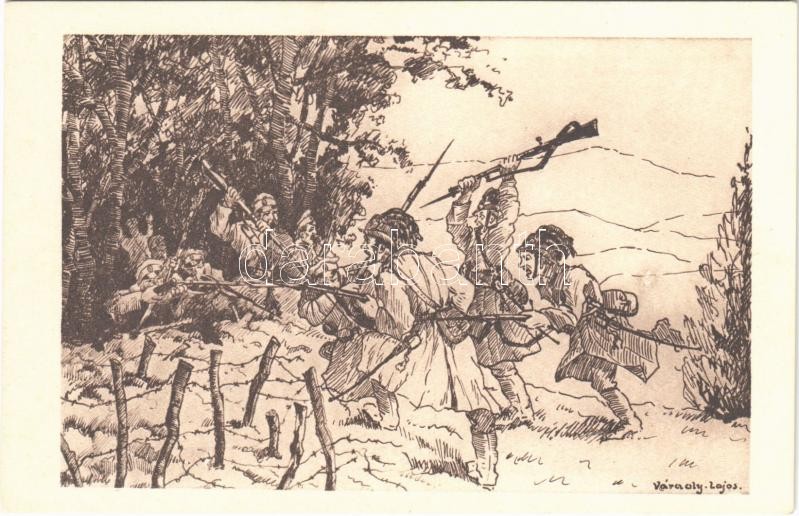 Vitéz Béltelki Mihály tiszthelyettes 1914. szeptember 24-én a Fenyvesvölgyben az orosz előőrsöt megtámadta és elfogta / WWI Austro-Hungarian K.u.K. military art postcard, gendarme officer s: Várady Lajos