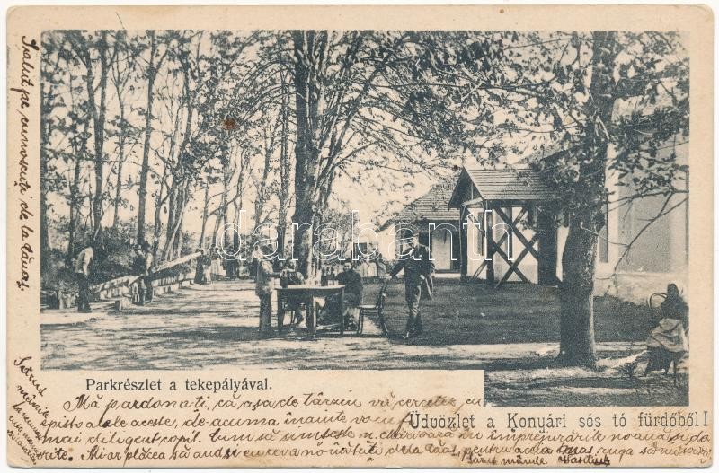 1903 Konyár, sóstófürdő, park és tekepálya (fl) https://www.darabanth.com/hu/409-Gyorsarveres/409.0/Kepeslapok/Magyarorszag~1000005/1903-Konyar-sostofurdo-park-es-tekepalya-fl~II2541281