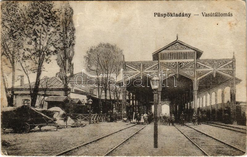 1915 Püspökladány, vasútállomás faszerkezetes előcsarnoka (fl) https://www.darabanth.com/hu/409-Gyorsarveres/409.0/Kepeslapok/Magyarorszag~1000005/1915-Puspokladany-vasutallomas-faszerkezetes-elocsarnoka-fl~II2538527