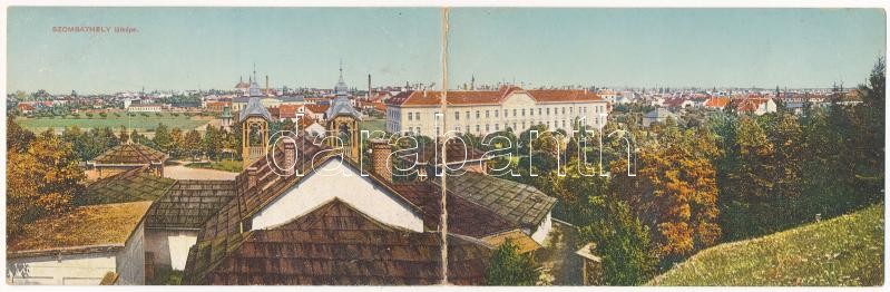Leírás: 1919 Szombathely, látkép. Dukesz Jenő kiadása. kihajtható panorámalap / folding panoramacard (hajtásnál kopott / worn at fold)
