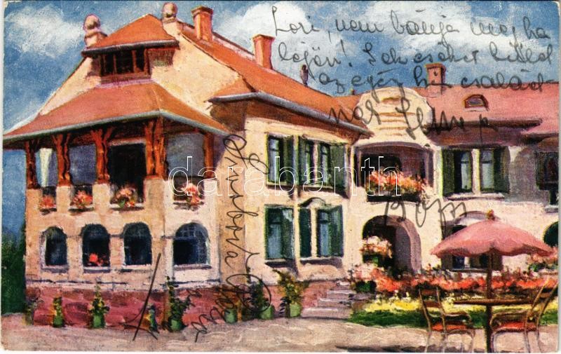 Leírás: 1932 Balatonkenese, Szállóépület. A Székesfővárosi Alkalmazottak balatonkenesei üdülőtelepe s: Kálnai Knappné (Rb)