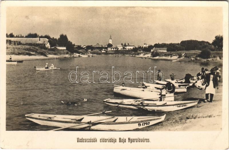 1933 Baja, Vadevezősök eldorádója, evezős csónakok https://www.darabanth.com/hu/409-Gyorsarveres/409.0/Kepeslapok/Magyarorszag~1000005/1933-Baja-Vadevezosok-eldoradoja-evezos-csonakok~II2375047