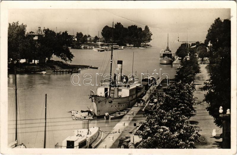 Leírás: 1942 Siófok, kikötő, gőzhajók